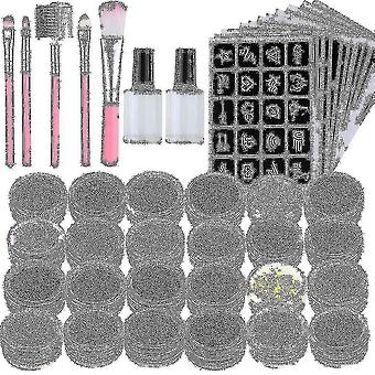 Glitter Tattoo Set, New Glitter Tattoo Kit With 24 Large Glitter Tubes & 125 Stencils & 2 Glue & 5 Brushes, Temporary Tattoos For Children, Teenagers