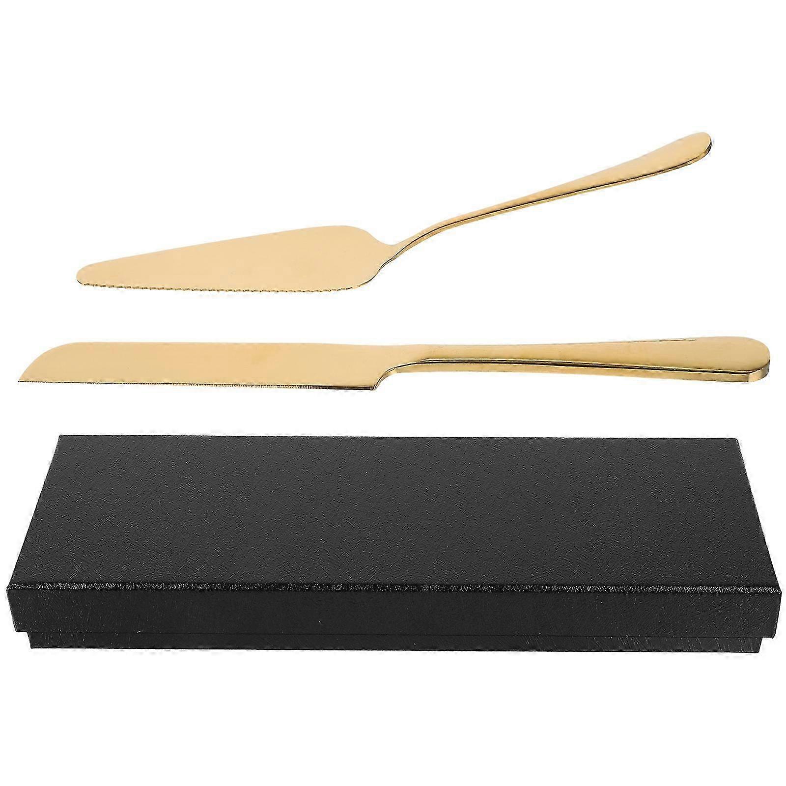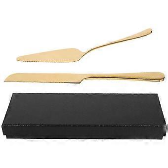 Wedding Cake Server Set Stainless Steel Cake Cutter Spatula 23.5cm Golden