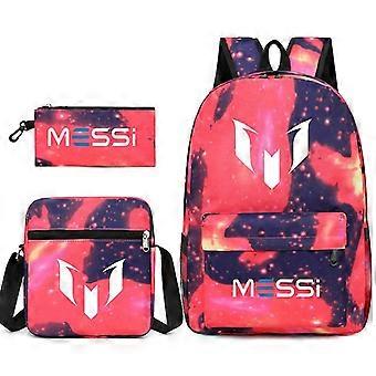 Σετ τριών τεμαχίων σχολική τσάντα μαθητή σακίδιο χαλάρωσης τσάντα ώμου τσάντα μολυβιού τσάντα με τον Μέσι τυπωμένο