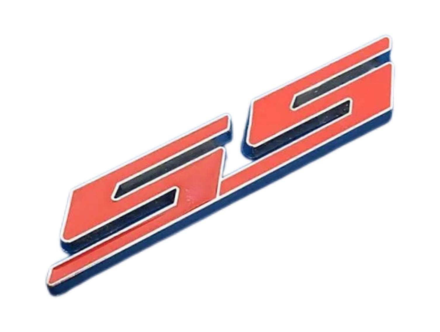 (Set of 2) Slant SS Grill Side Fender Trunk Emblem Badge Decal with Sticker for Chevrolet Chevy Camaro Impala Malibu Hold