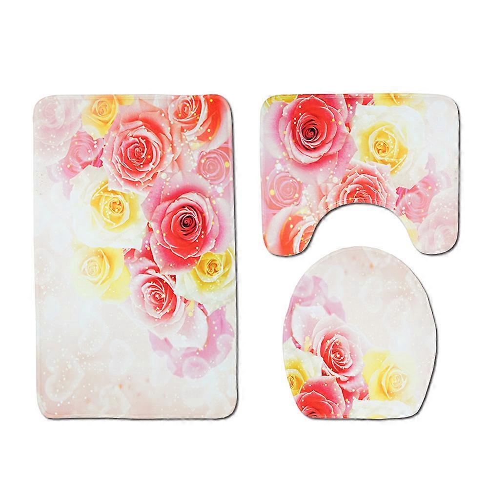 Toilet Mat Set Bathroom Decor Starlight Roses Polyester Fiber Quick Drying Rectangular 3Set
