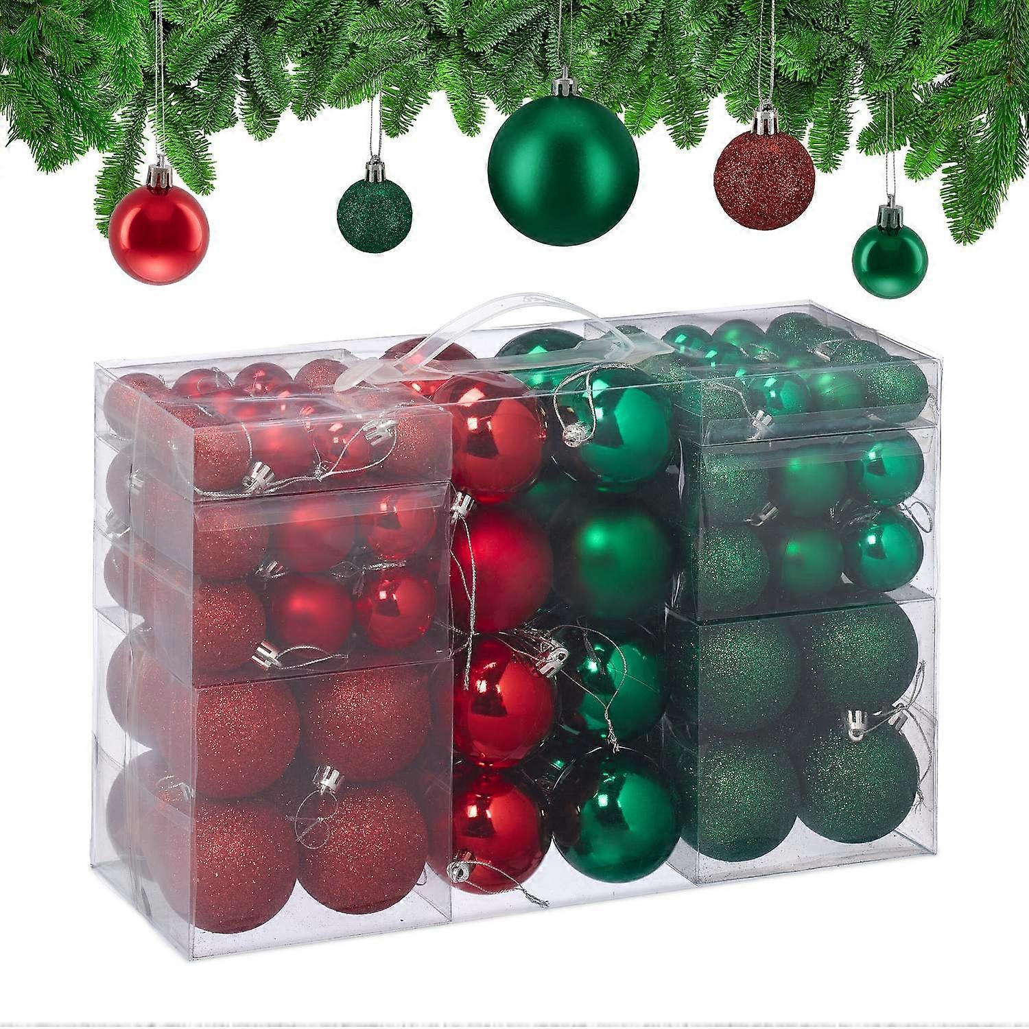 Julgranskulor set, röd och grön, olika finish