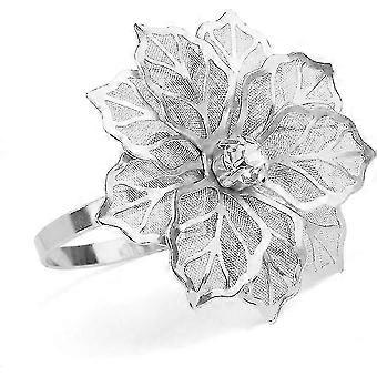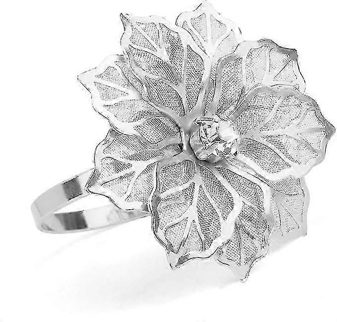 Set of 12 Alloy Napkin Rings with Hollow Out Flower Napkin Ring Holders for Wedding Party Holiday Banquet Christmas Dinner Delicate (Silver)1.7 inch