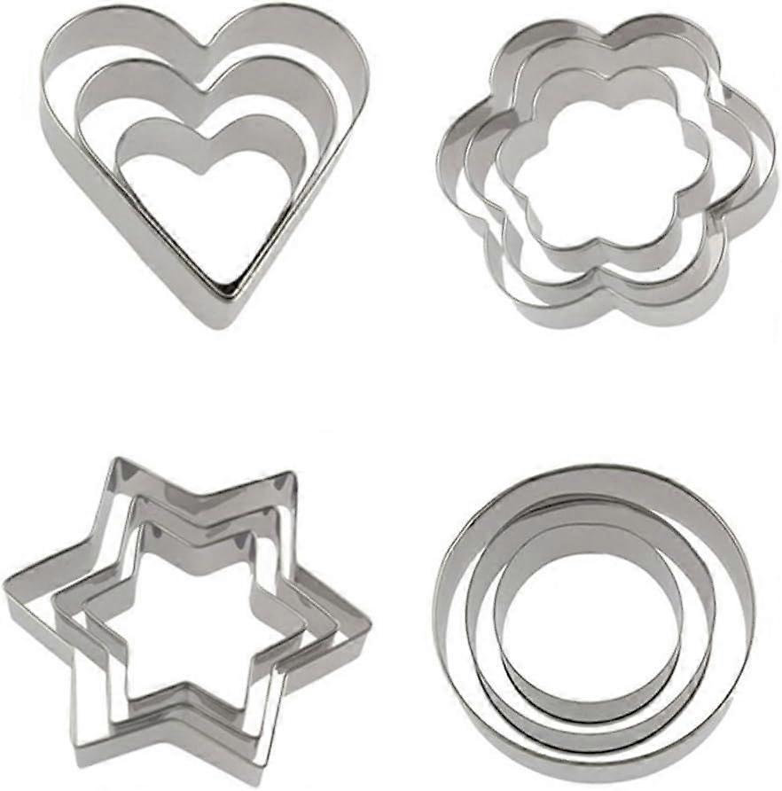Set of 12 Heart Cookie Cutters, Metal Cookie Cutters, Stainless Steel Cookie Cutters, Pastry Cutters, Fondant Biscuit Cookie Chocolate Heart, Star, Fl