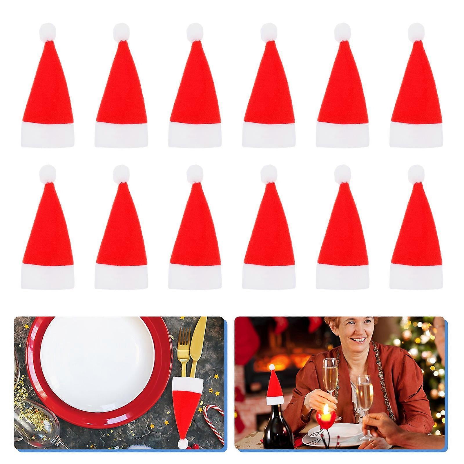 party silverware holder-Mini christmas hat shape design: great for storage forks, knives, spoons,and also can be decorated with bottles cap-kitchen utensils holder glassine bags-Christmas party supplies: the christmas ornaments silverware pouches are ideal for large family gathering or holiday party not only can use at home, but also serve as silverware bags for restaurant-holiday silverware holder silverware holders chriatmas-Classic mini Santa hat: decoration props for party to create pleasant and interesting atmosphere-bottle covers cutlery bags for party-Multipurpose: it can be used to decorate christmas cutlery, silverware clips, cutlery, wine bottles, lollipops, dolls and various props not only for desktop decoration, but also for creative craft projects, you can also hang extra hats on the christmas tree for decoration, and enjoy the fun family christmas dinner with your family-silverware bags mini hats for crafts-Easy to use: these christmas dinner decorations can not only be applied to hold silverware, but are also ideal for decorating christmas plates and hanging on christmas trees, wine bottles, windows, doors and so on-holiday mini hats kitchen silverware holder-12 x Mini Christmas Hat-spoons and forks organizer