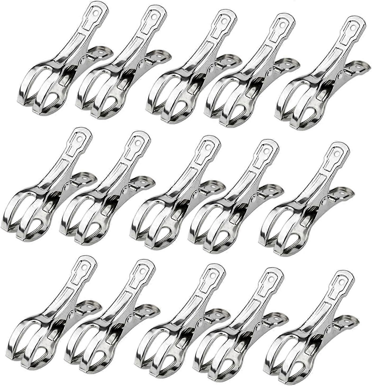 Set of 15 Stainless Steel Beach Towel Clips for Clothes - Large Windproof Clips