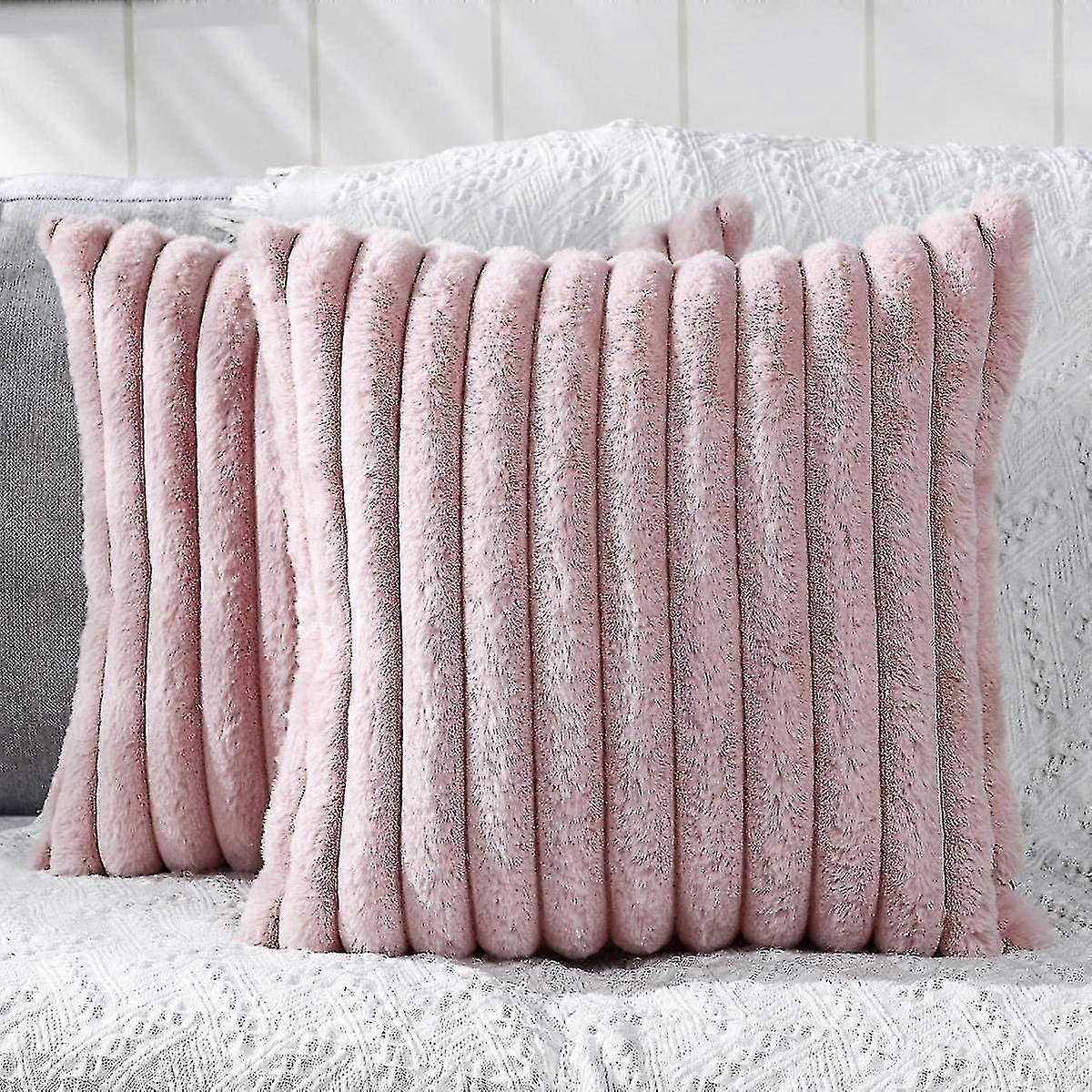 Set Of 2 Decorative Cushion Covers Plush Faux Fur Fuzzy Striped Soft Pillow Case Cushion Cover