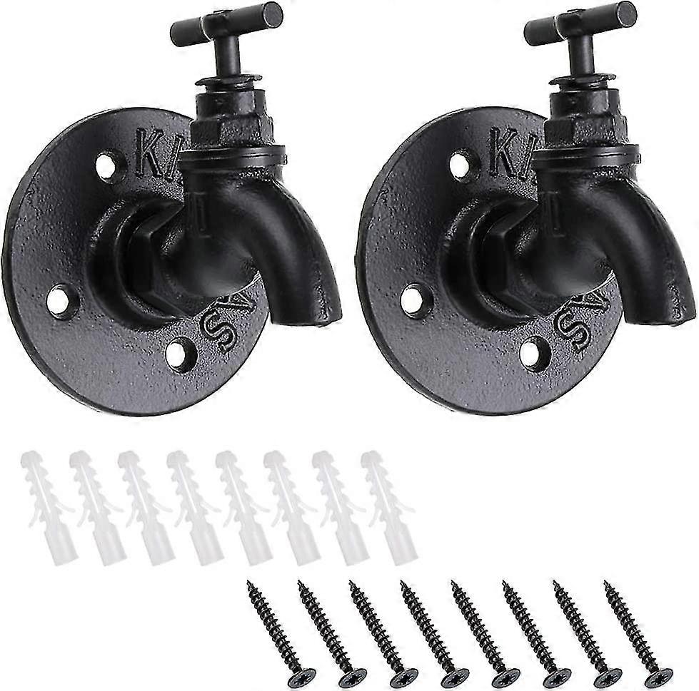 Set Of 2 Wall Mounted Decorative Hanging Hooks For Clothes, Towels, Bags, Umbrellas And Hats Vintage And Industrial Style Tap Shaped