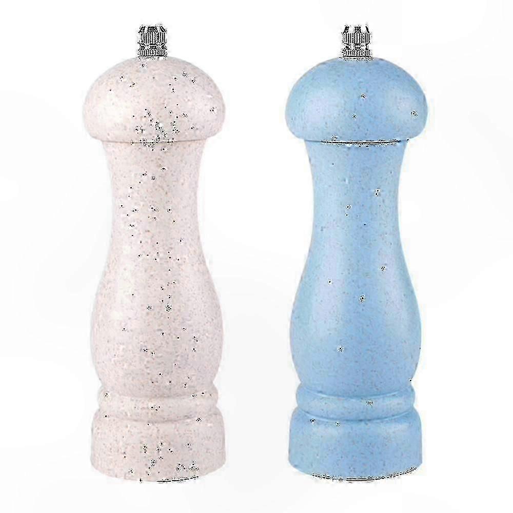 Set of 2 Wooden Salt and Pepper Mills, Adjustable Grind, Refillable, Blue and White