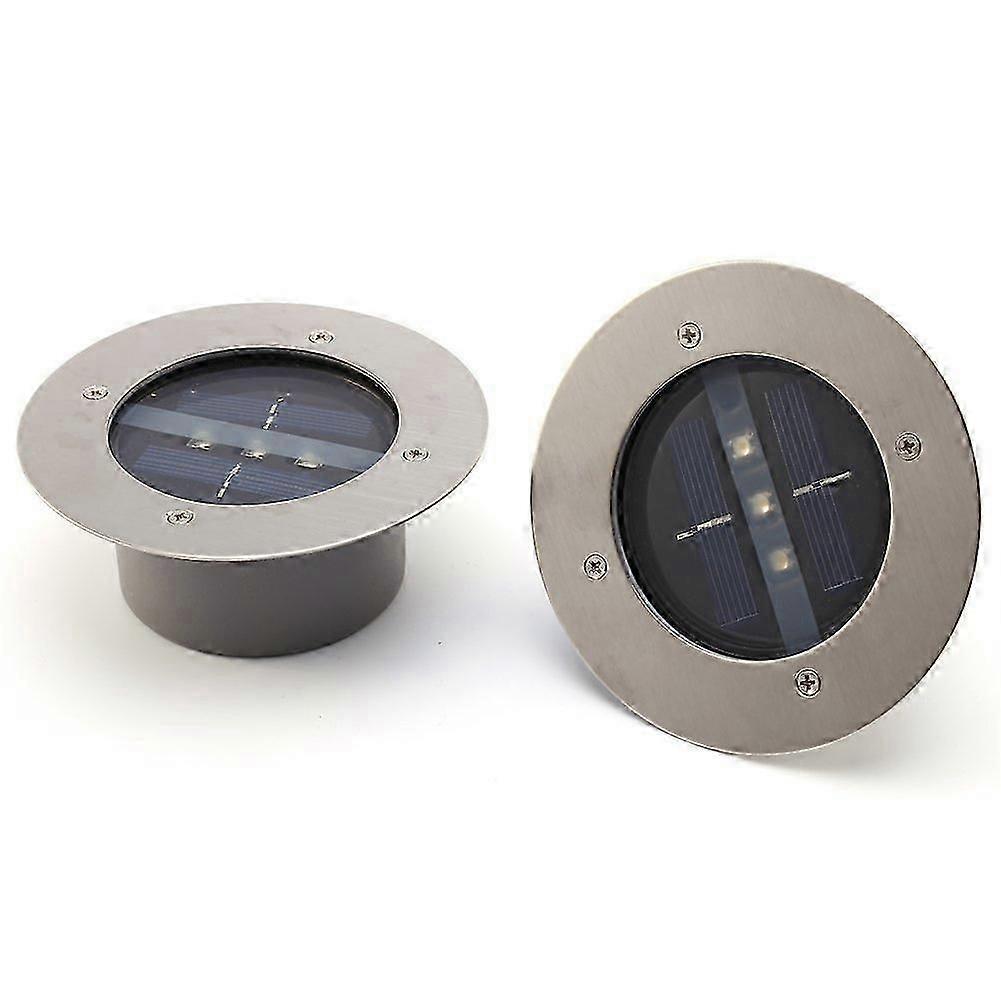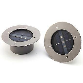 Set Of 2 Modern Solar Led Spotlights Recessed Ground Round Stainless Steel/glass For Outdoor, Br-vie(warm Light