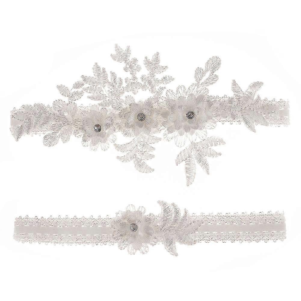 2 Pcs Wedding Garters Set Lace Bridal Garter Stretchy Floral Garter For Bride Blue And Whi