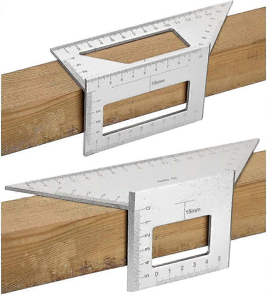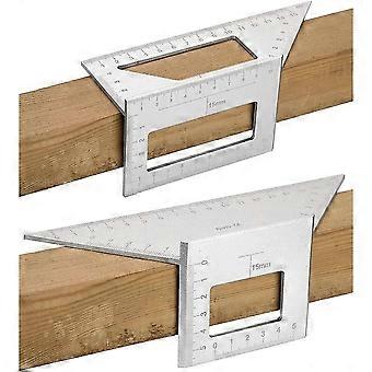 Set Of 2 Saddle Layout Square Gauge For Woodworking, 45/45 Degree - 90/45 Degree Square Layout Miter Angle Measuring T Ruler, Aluminum(silver)