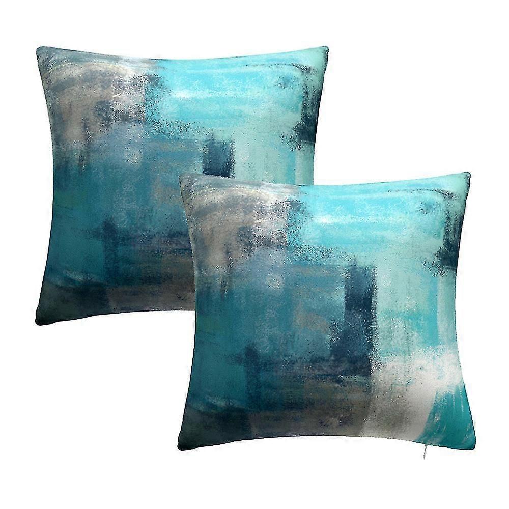 Set Of 2 Turquoise And Grey Artwork Contemporary Decorative Throw Pillow Covers Cushion Case 45*45cm