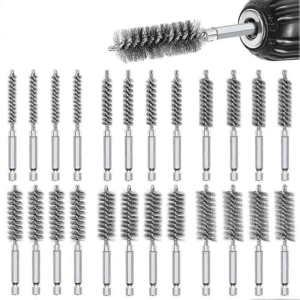 24PCS Wire Bore Brushes Set for Power Drill, with 1/4 Inch Hex Shank for Tubes Pipe Cleaning(8/10/12/15/17/19MM)