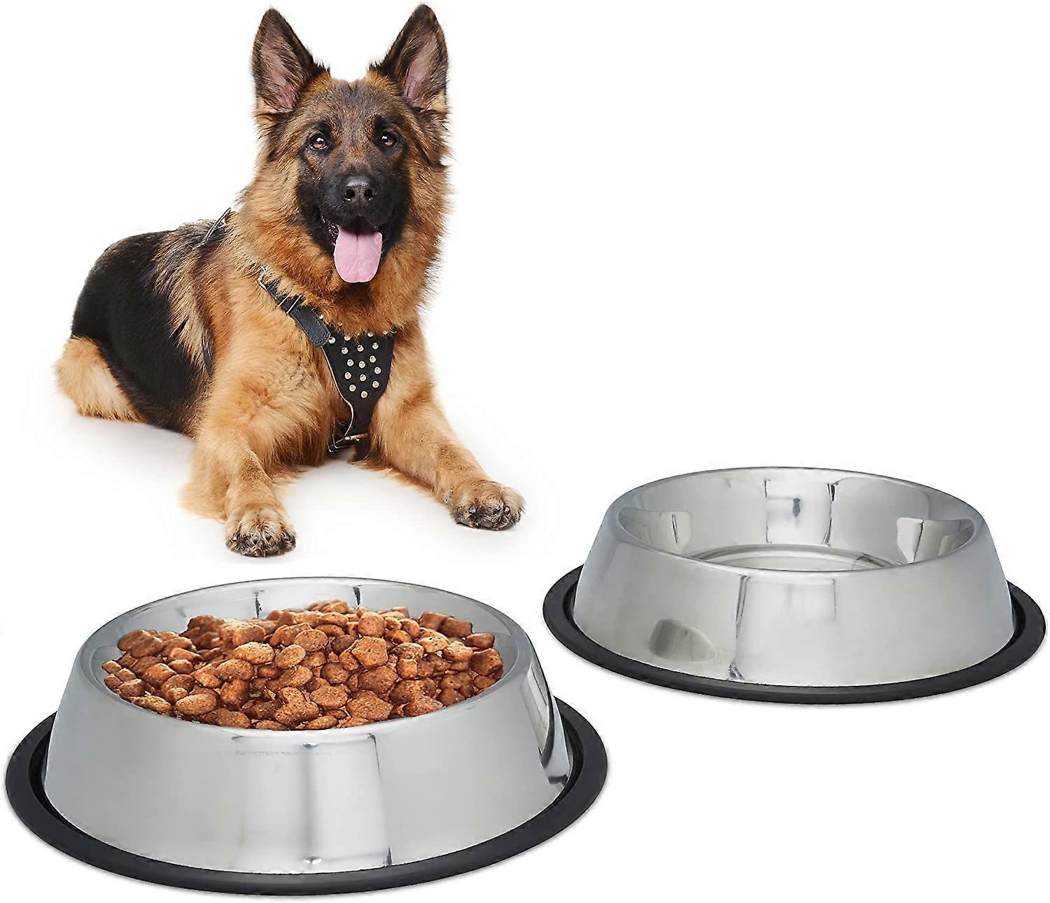 Set 2x Dog Bowls Bowls Water Bowl Croquette & Pt Non-slip Stainless Steel Anti-rust Size XL Silver