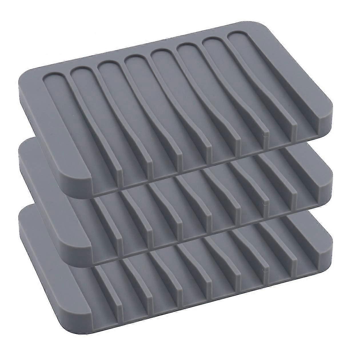 Set of 3 Silicone Soap Dish with Automatic Flow, Bath Shower Soap Box for Bathroom, Kitchen or Travel, Gray