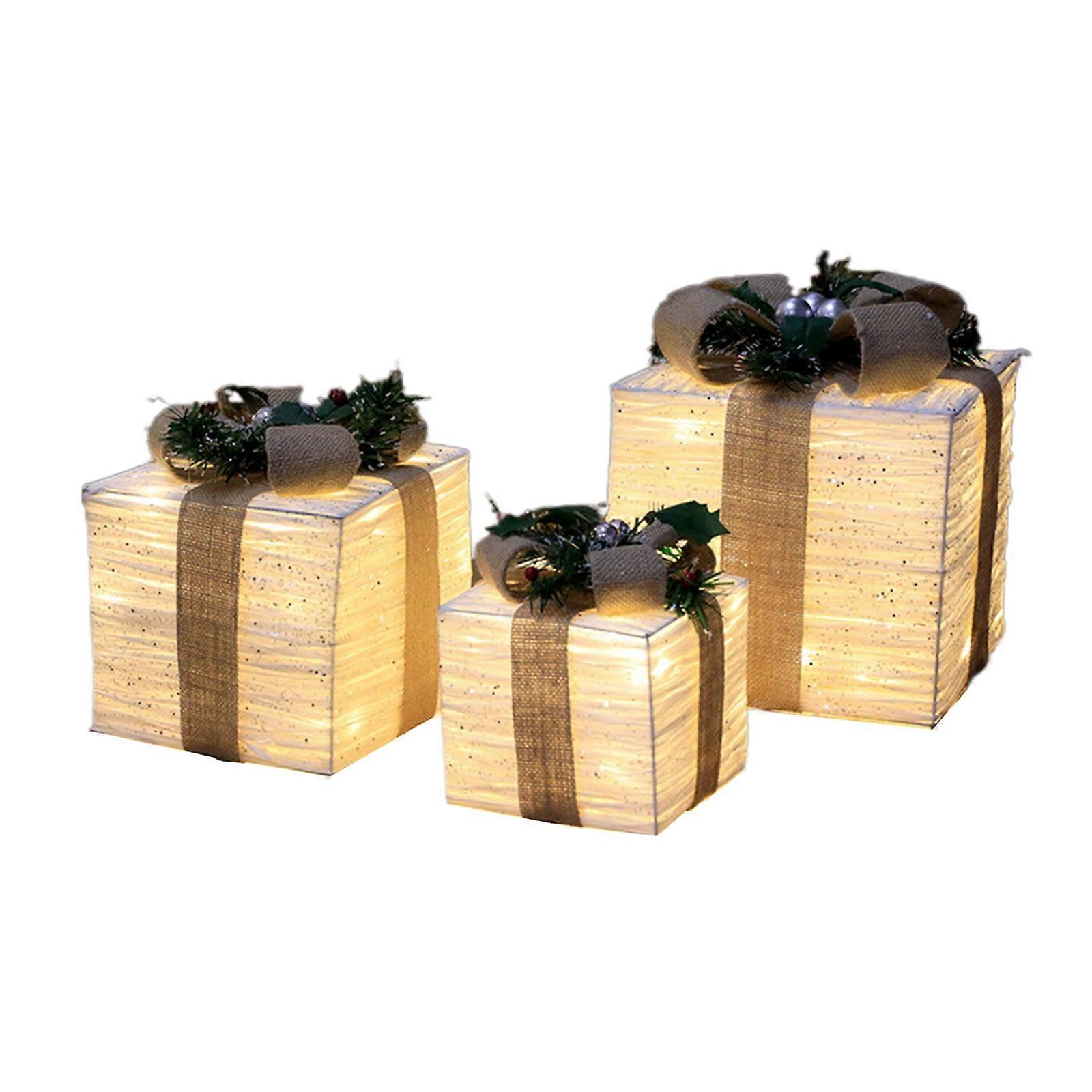 Set of 3 Christmas Lighted Gift Boxes, Present Boxes indoor and outdoor