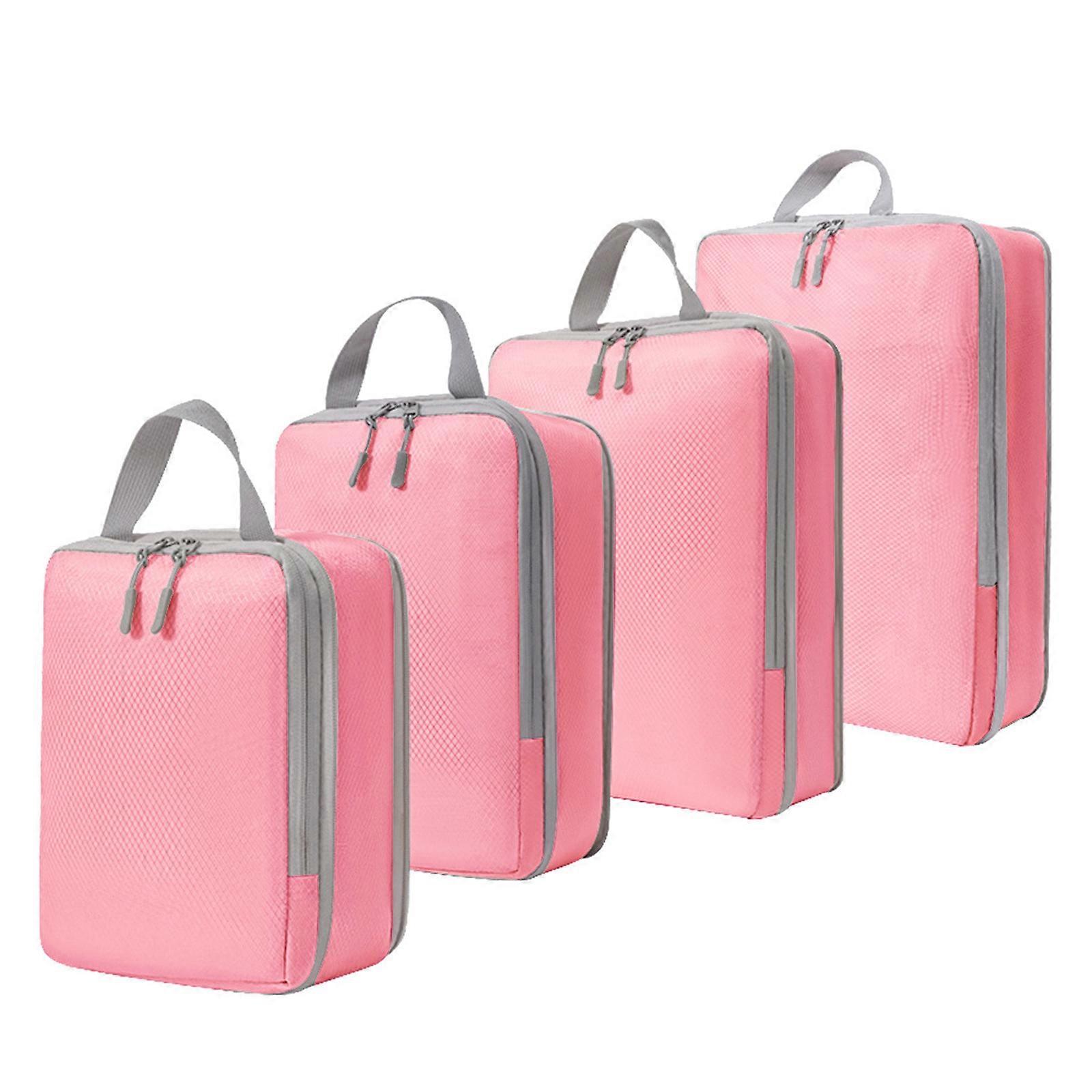 Set of 4 Vacuum Storage Bag Polyester Compression Bag Water Resistant Clothing Organizers for Closet and Suitcases Pink