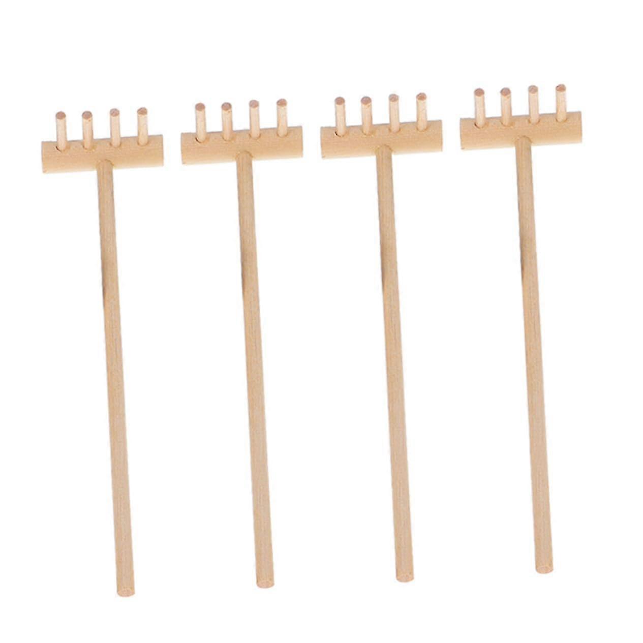 Set of 4 Mini Wooden Rake Sand Rake for Sandpit Garden Tools