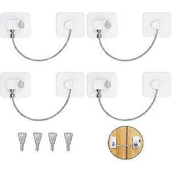 Set of 4 Child Safety Window, White Child Safety Door with 4 Keys, Child Safety Window with Powerful Adhesive for Windows Blocks Doors Drawers