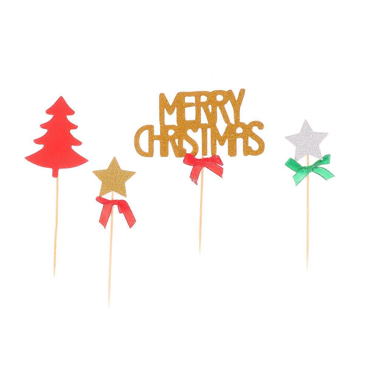 Festive 4Pcs Cake Toppers Set With Merry Christmas Letters For Decorating Cupcakes And Birthday Cakes