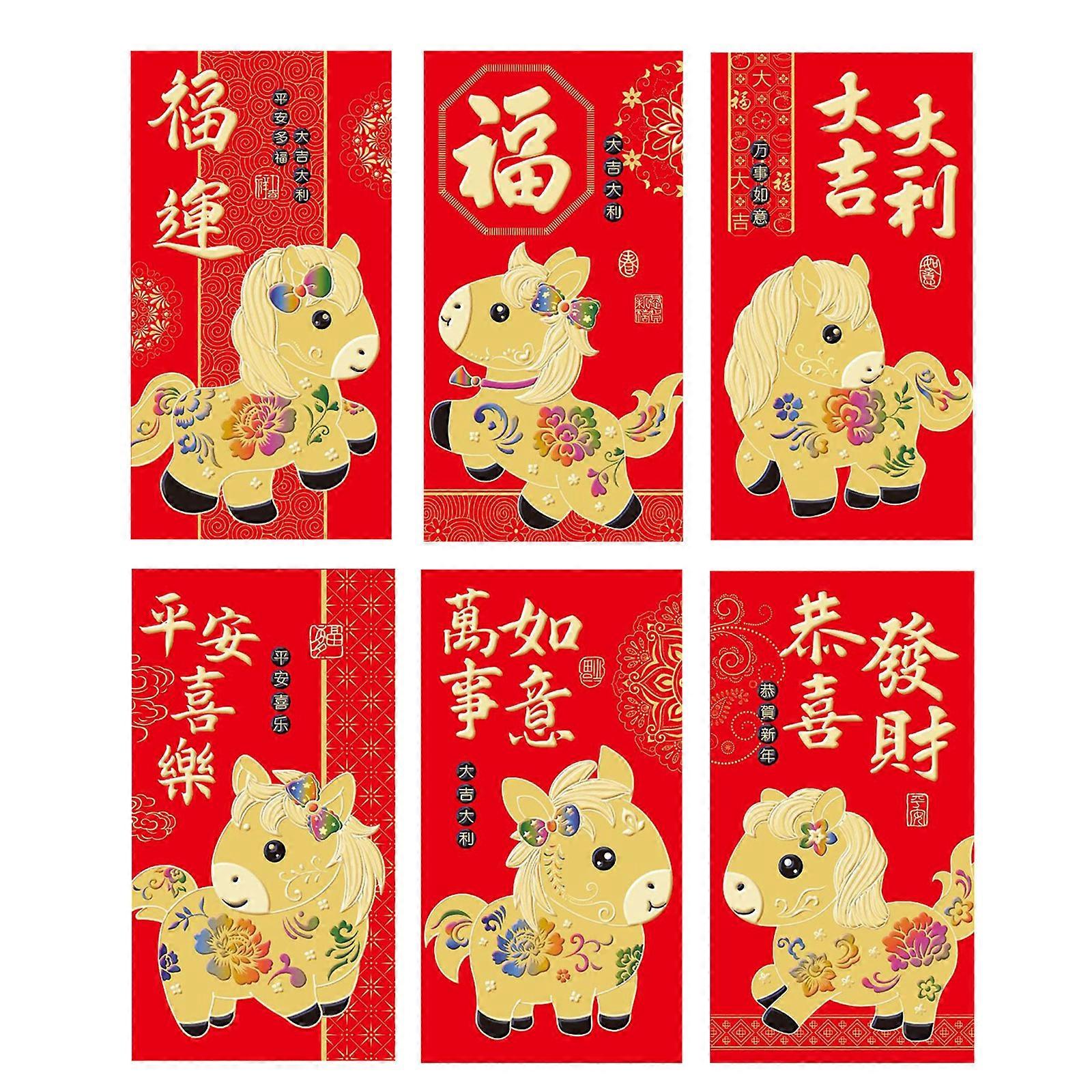 Pack Of 6 Golden Foils Chinese New Year Red Envelopes With Auspicious Blessing For Holidays Weddings Celebration Multicolor
