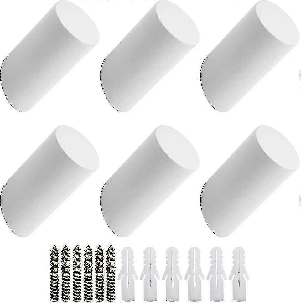 Set of 6 Beech Wood Wall Hooks, 3x6cm Cylinder, Decorative White, Max Load 15kg