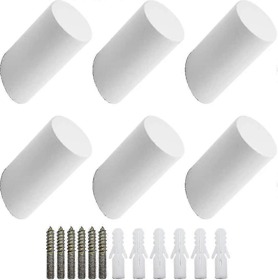 Set Of 6 Beech Wood Wall Hooks 3x6cm Cylinder Wall Coat Hook Decorative White Hook For Coat Hat Scarf Bag Towel Maximum Load 15kg