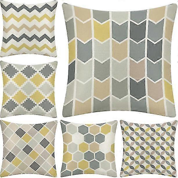 Set of 6 Geometric Pattern Cushion Covers Modern and Simple Style Pillow Case for Sofa Home Living Room Bedroom Decoration, 45x45cm