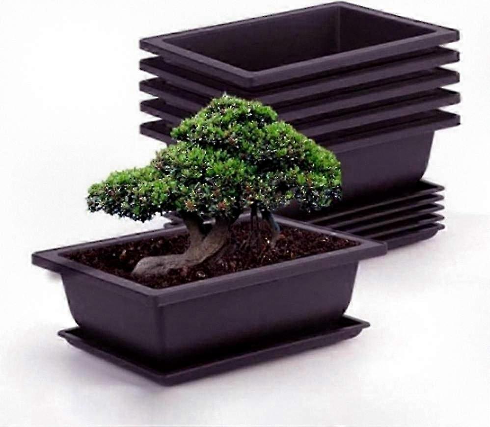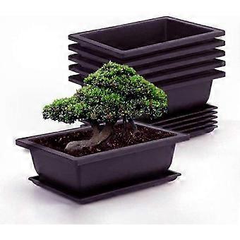 Set of 6 Square Plastic Bonsai Training Pots with Tray, Succulent Plant Containers for Garden, Living Room, and Office