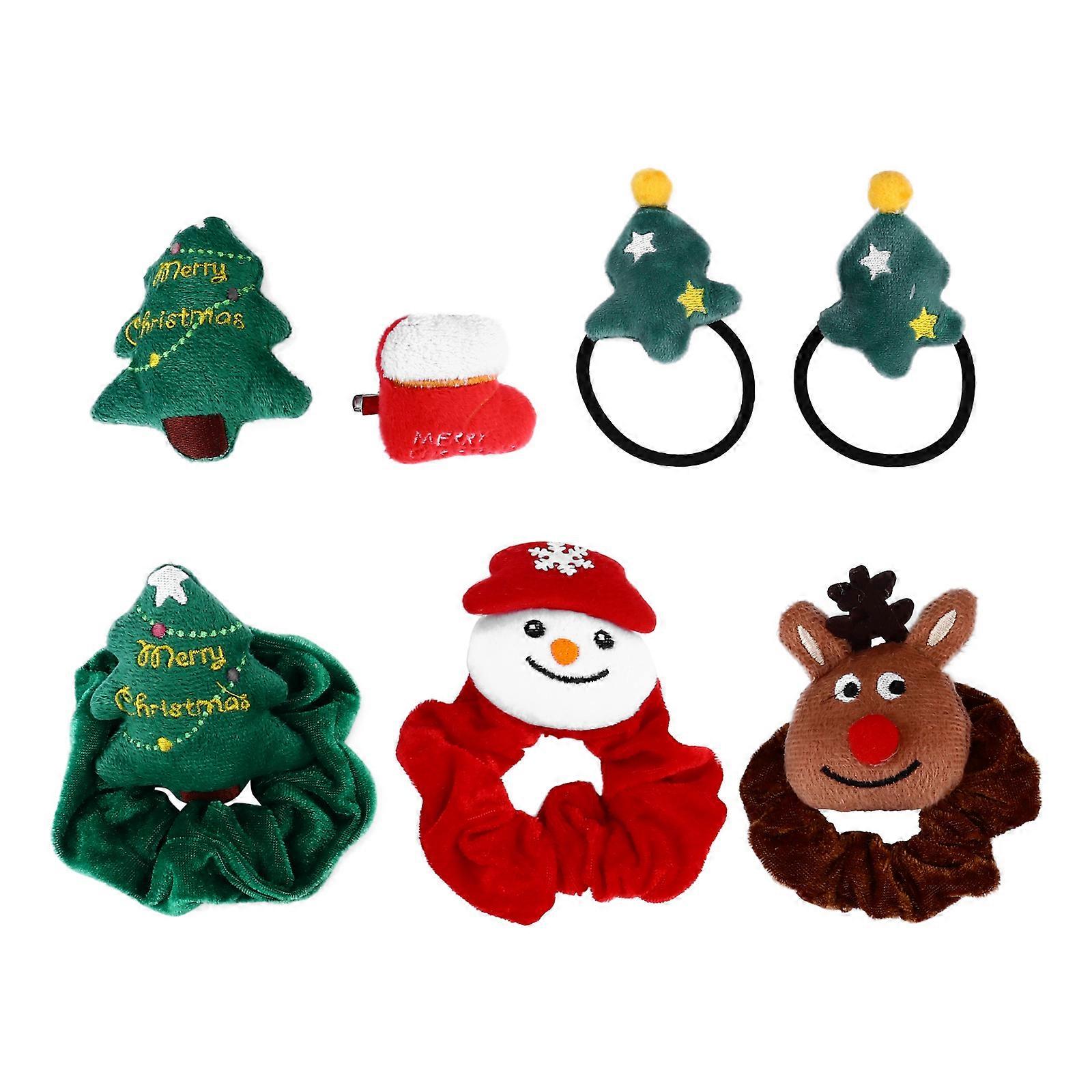 7Pcs Set Christmas Themed Hair Ties Assorted Color Cartoon Hair Ropes For Everyday Wear Children Girls