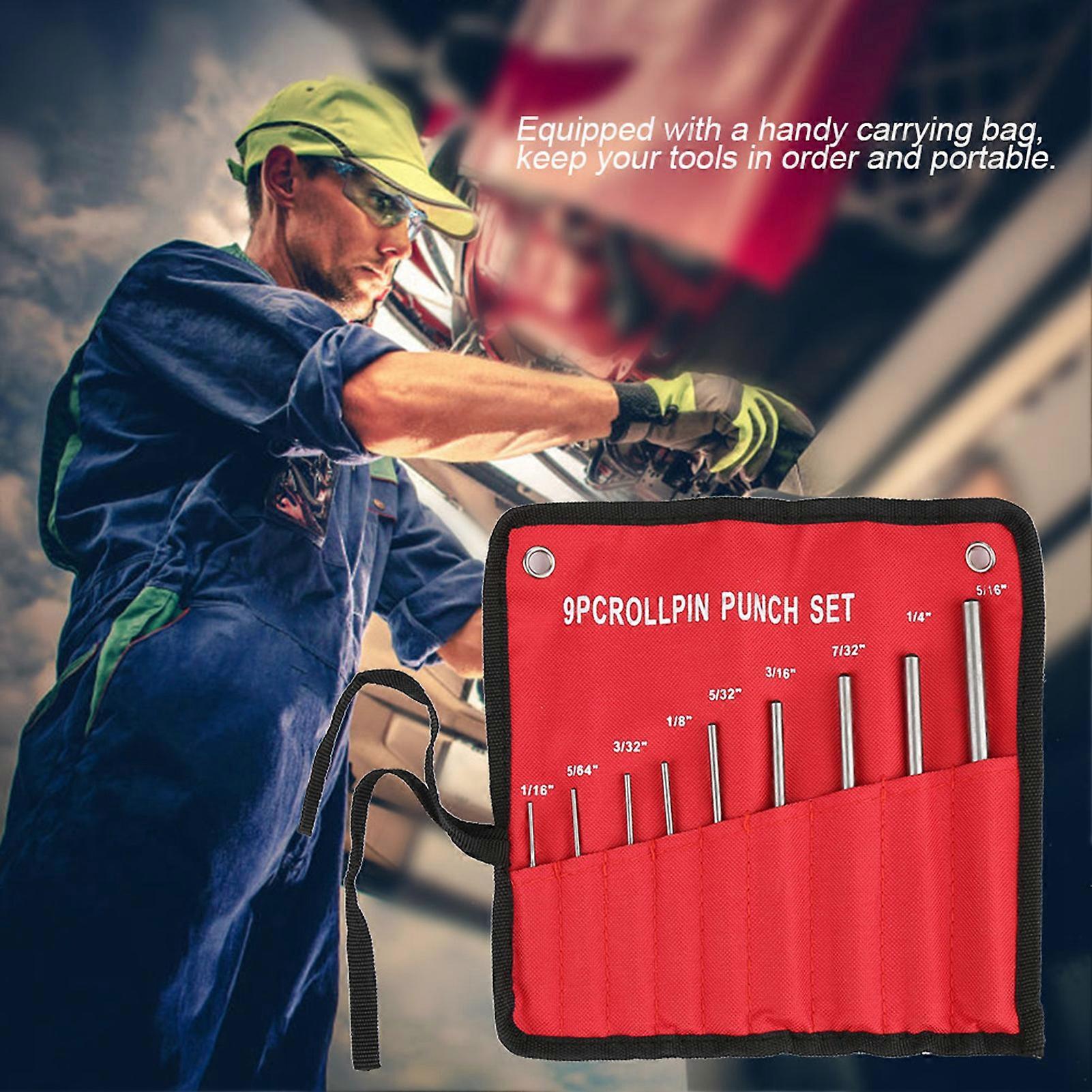 9PCS Durable Steel Roll Pin Punch Set Mechanics Professional Tool Kit