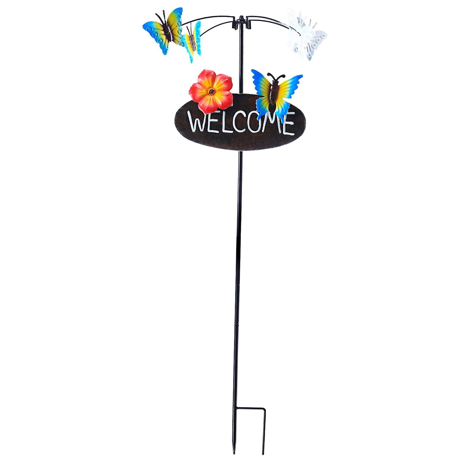 Welcome Sign Housewarming Gift Wind Spinner for Outdoor Courtyard Sidewalk Butterfly