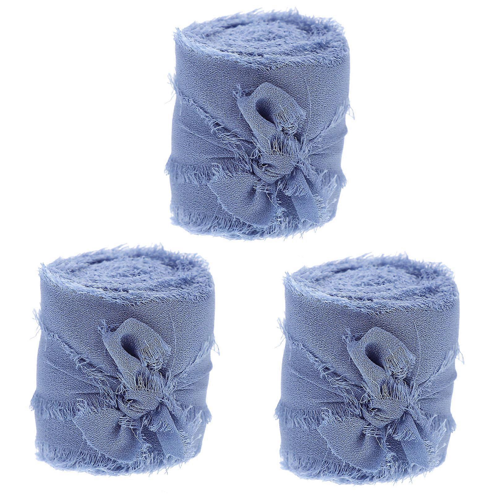 Chiffon Ribbons Gift Decorative Ribbons Floral Accents 450X3.8cm Blue Premium Texture 3Pcs