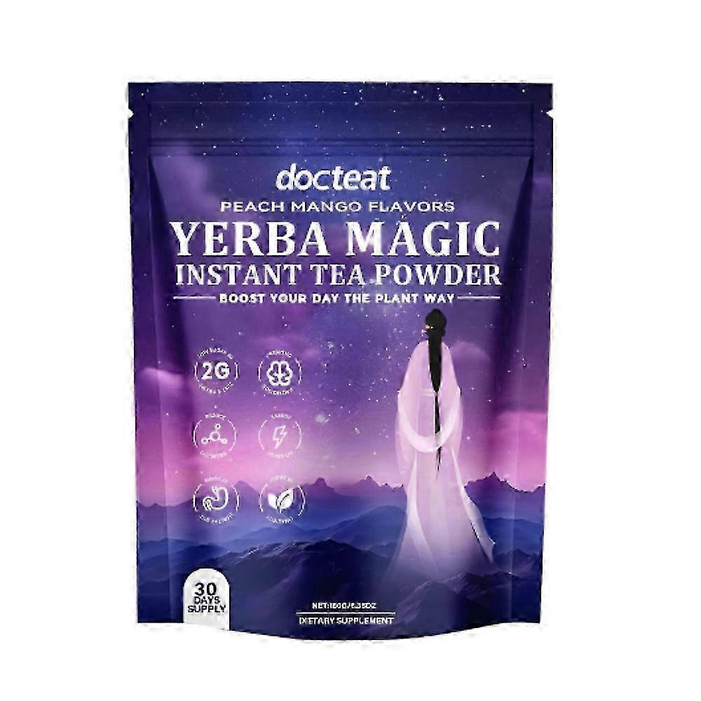 Yerba Mate Instant Tea Powder, Peach Mango Flavors, Natural Tea Mate with Prebiotics