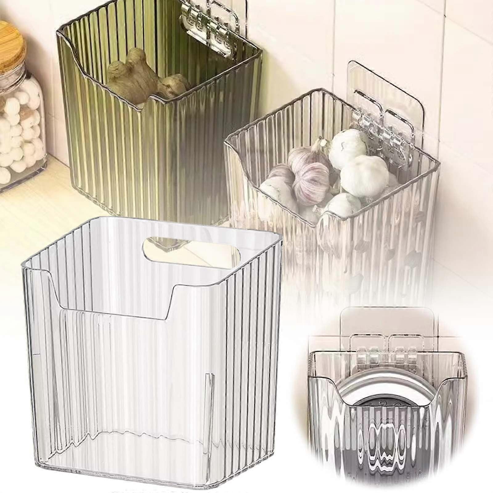 Kitchen Garlic Onion Transparent Storage Small Items Non Drilling Wall Mounted Storage Box Kitchen Shelf Organizer Home Essentials