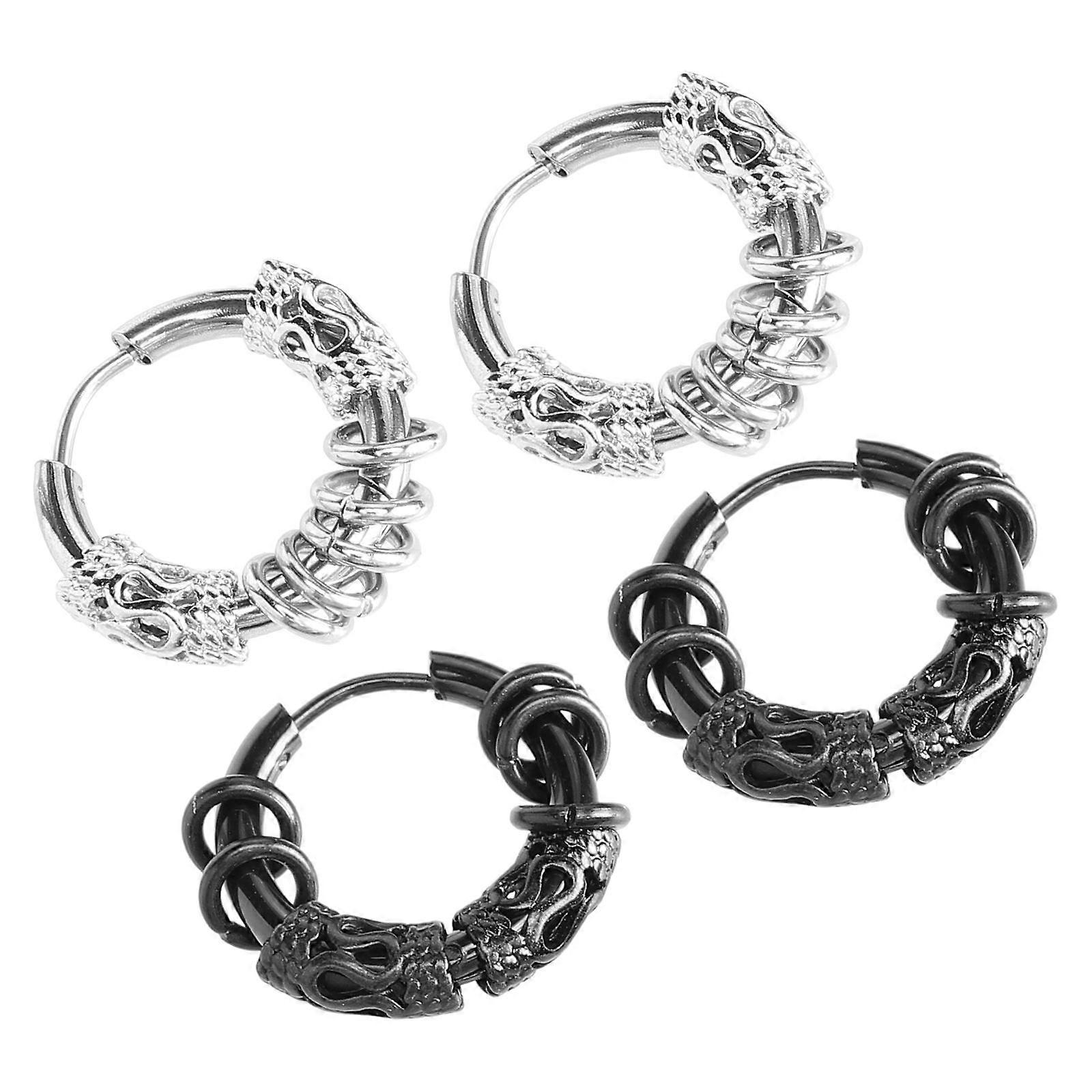 Stainless Steel Earring for Men Round Dragon Earrings 6Pairs Set