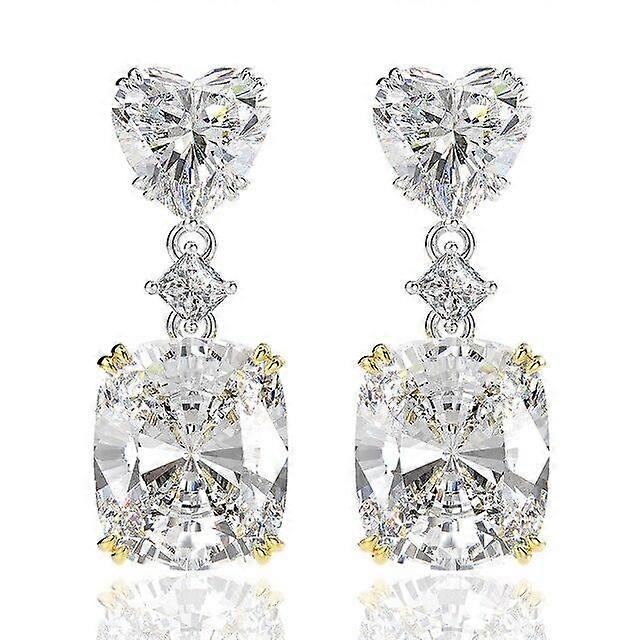 100 %925 Sterling Silver Heart Created Moissanite Gemstone White Gold Drop Dangle Earrings Fine Jewelry
