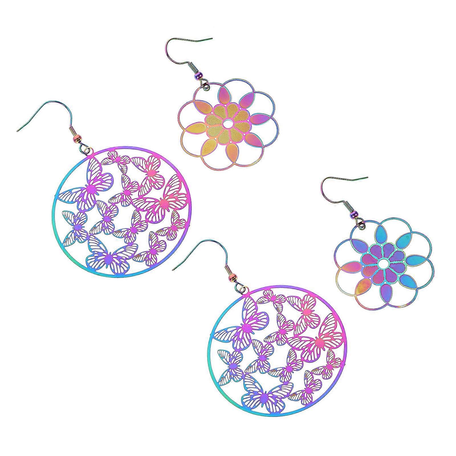 Hollow Pattern Earrings Stainless Steel Jewelry For Daily Decoration Gift Giving Assorted Color Stylish 4 Pairs