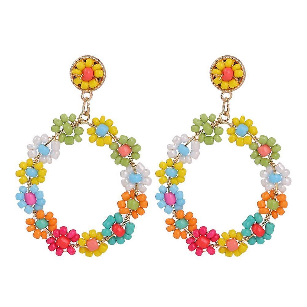 Bohemia Beads Flower Earrings for Decor Beaded Round Ear Drop 1Pair
