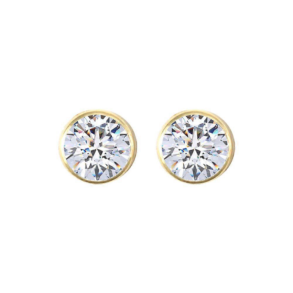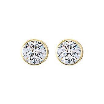Jewelco London 9ct Yellow Gold White Round Brilliant Cubic Zirconia Rub Over Solitaire Stud Earrings, 6mm 1.70 Carats