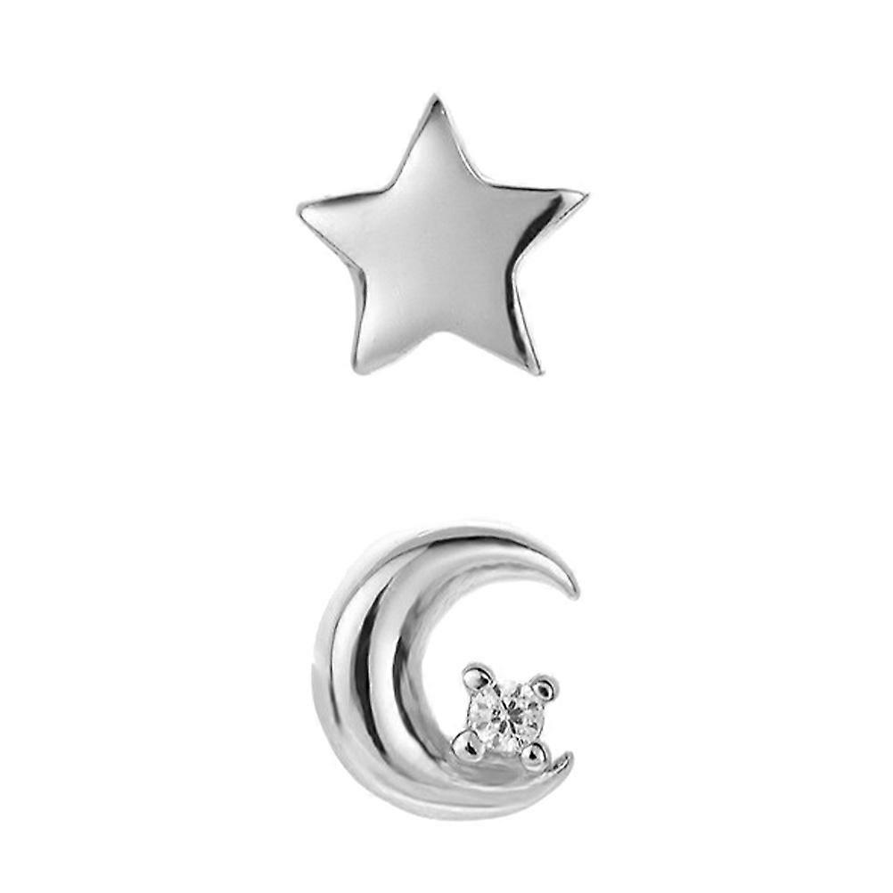 Star Moon Earring Silver Asymmetric Ear Decor for Women 2Pairs