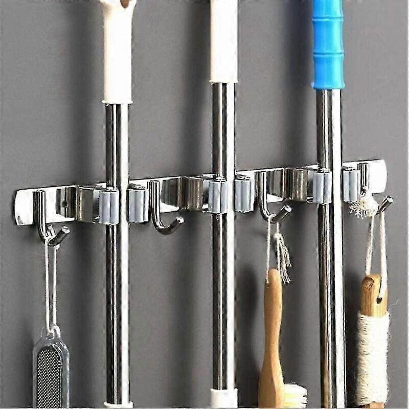 Wall Broom Holder (3 Slots and 4 Hooks) - Stainless Steel Broom Hanger, Storage Hanger Holder for Kitchen, Garage, Laundry Room (broom holder only)