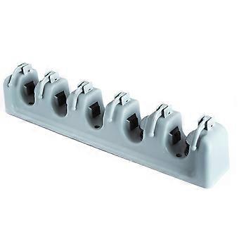 Broom Holder with 5 Holding Positions & 6 Hooks, Easy Wall Mount Storage for Organizing Garage or Closet