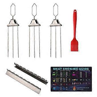 3 Way Grill Skewers with Handle,Stainless Steel BBQ Skewer Kabob Skewers for Meat, Chicken, Sausages,B