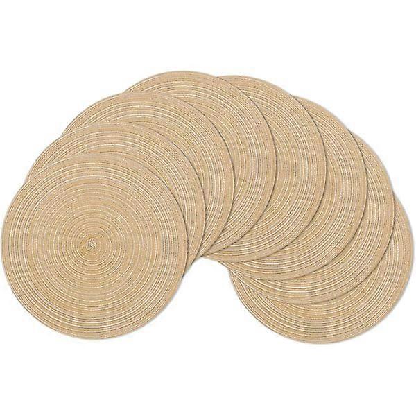 Placemat, Set of 6, Khaki 38x38cm Round Woven Placemat Washed