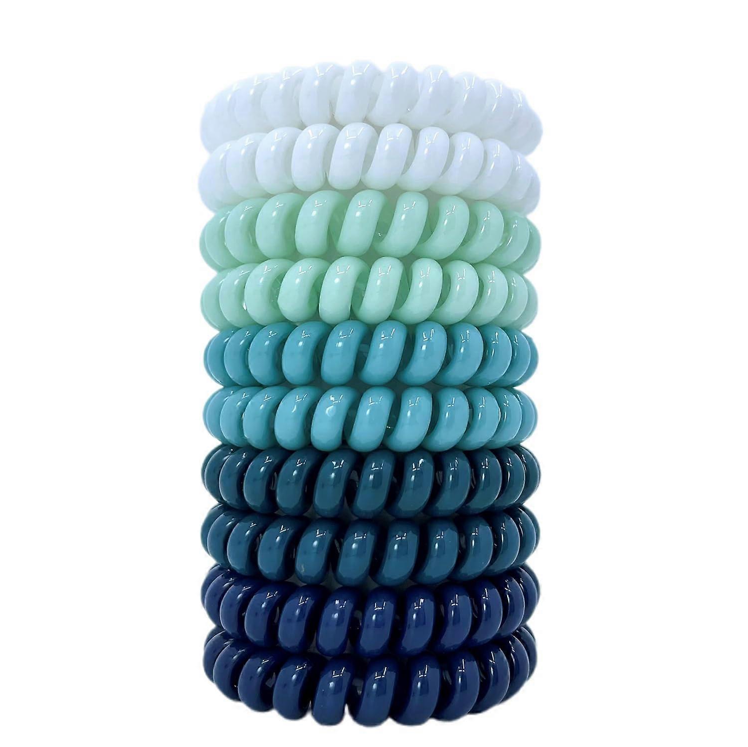 Spiral Hair Ties, Coil Hair Ties, Elastic Phone Cord Hair Ties , Hair Coils 10Pcs-Blue Teal White,Ponytail Holder for Women Men…