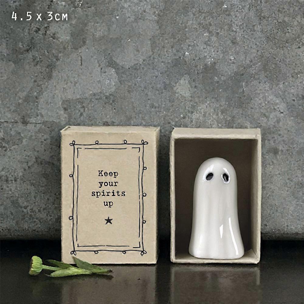 Porcelain Ghost Matchbox Ornament - Keep Your Spirits Up - White Halloween Decor