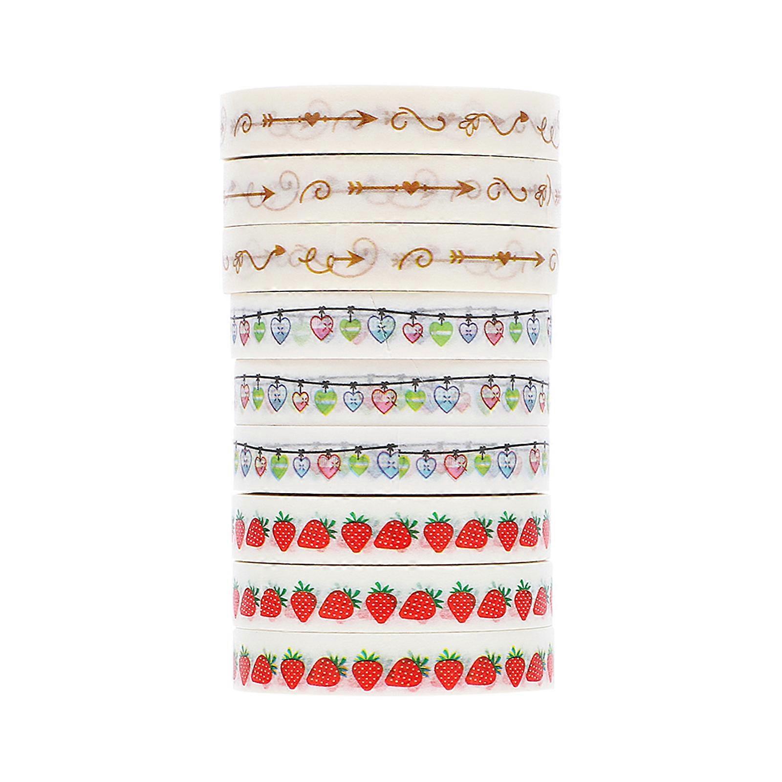 Narrow Cartoon Decorative Adhesive 9Pcs Borders DIY Tapes in Assorted Color for Planner Diary Suitable for Decor in Photo Frames and Wall Art