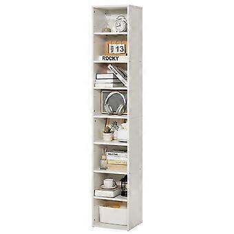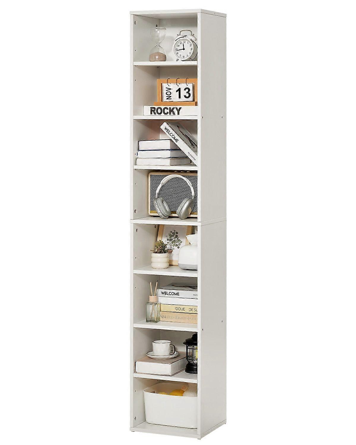 8 Tiers Narrow Bookshelf, 71 in Wooden Tall Open Bookcase with Height-Adjustable Shelf, Freestanding Display Storage Floor Bookcase, White